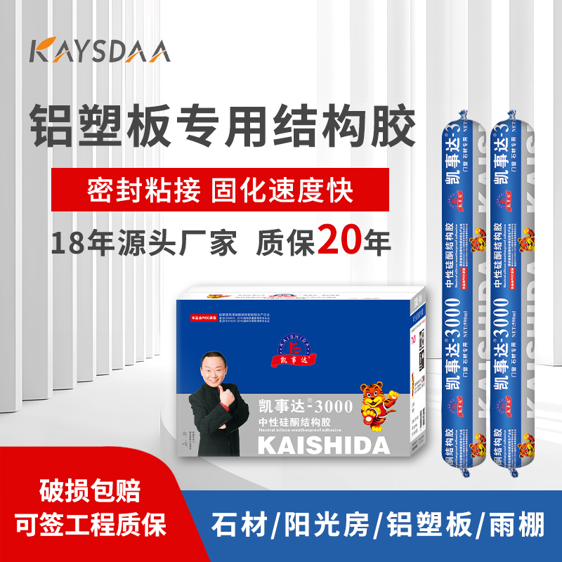 凱事達(dá)3000中性硅酮結(jié)構(gòu)膠,適用于石材、鋁塑板、平板玻璃、展柜 雨棚、陽光房,超強(qiáng)防水耐候